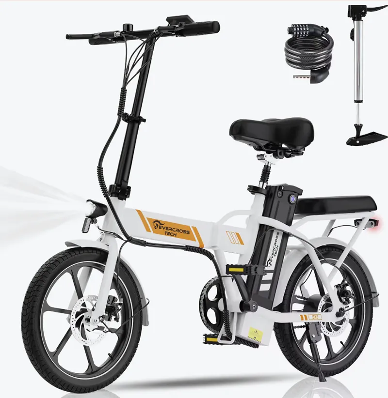 Abbiamo lasciato alla fine due e-bike più particolari, sullo store di Decathlon, all'interno delle offerte speciali di questo periodo. La prima è la Evercross EK5, una compatta pieghevole, con ruote da 16", motore da 250 W, batteria da 280 Wh, con doppio freno a disco. Da chiusa può essere facilmente trasportata, ed è dotata persino di cuscino posteriore per un passeggero. Il prezzo sarebbe di 1.199 euro, ma con lo sconto del 53% passa al prezzo incredibile di 557,99 euro.